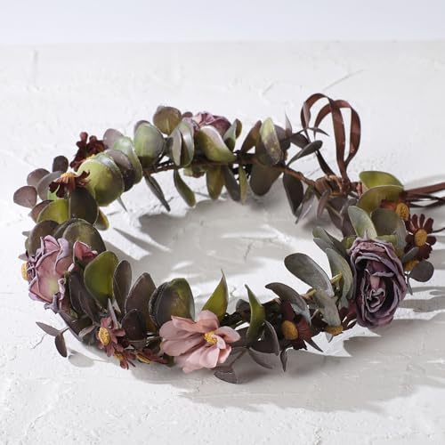 Purple Flower Crown Headband - Handmade Fairy Floral Headpiece Artificial Vintage Rose Flower Headbands with Ribbon for Women Girls Wedding Renaissance Party Cosplay Photo Shoot