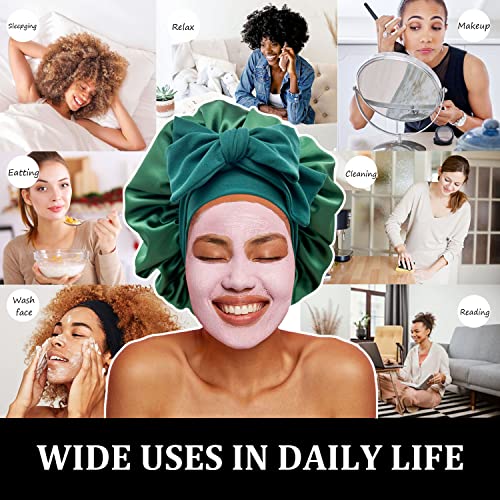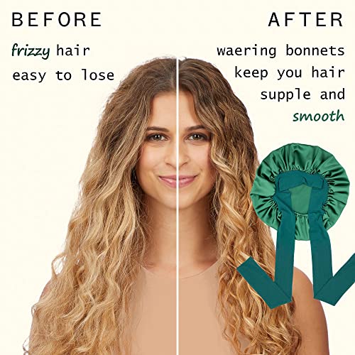 Satin Silk Hair Bonnet for Sleeping - Large Bonnets With Tie Band, Adjustable Straps, Night Sleep Cap for Women With Curly Braid Hair - Hunter Green