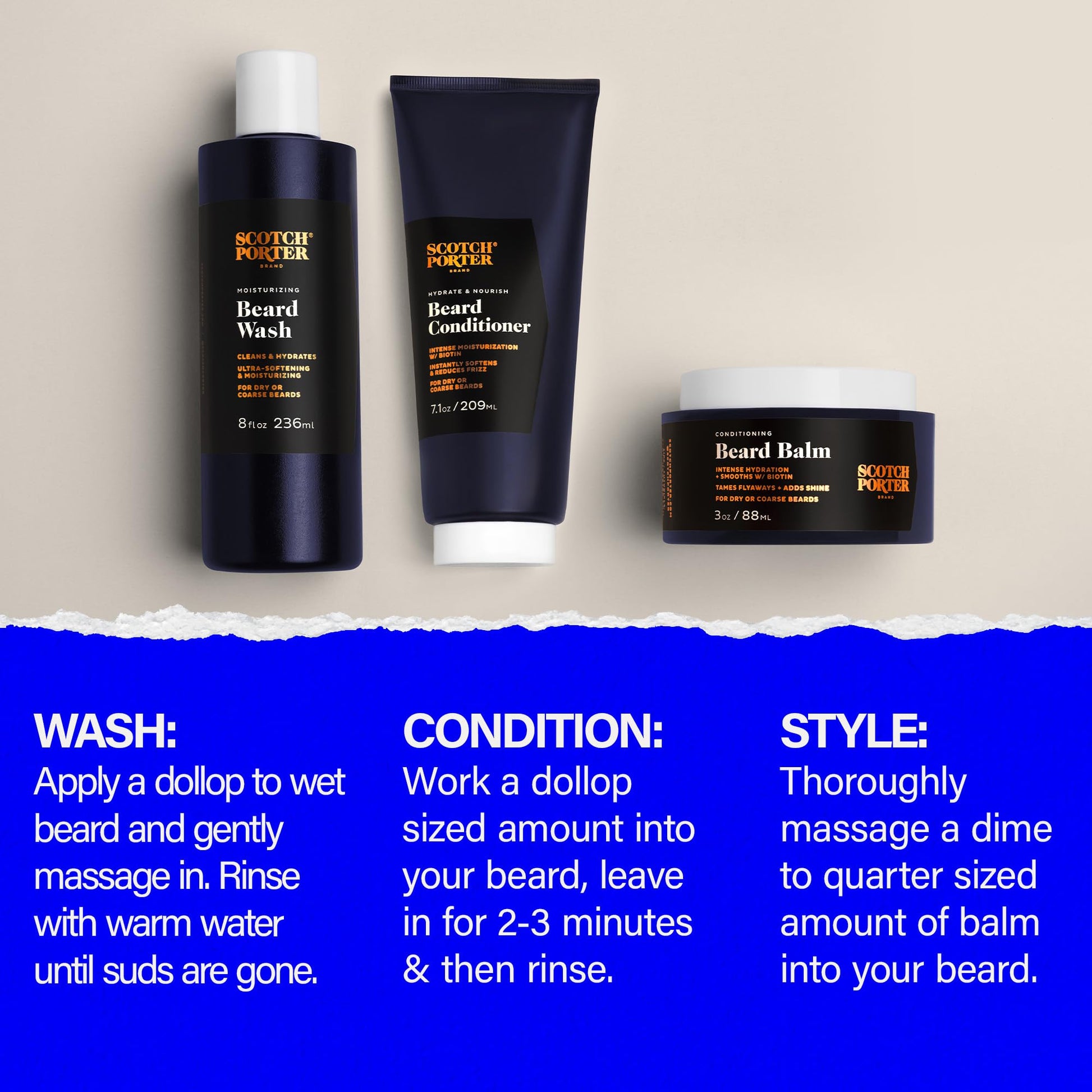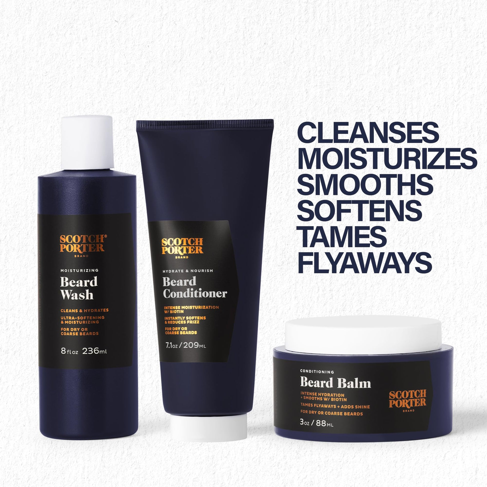 Scotch Porter Beard Wash, Conditioner & Balm – Cleanse, Moisturize, Hydrate, Soften & Style Coarse, Dry Facial Hair while Encouraging Growth for a Fuller, Healthier-Looking Beard