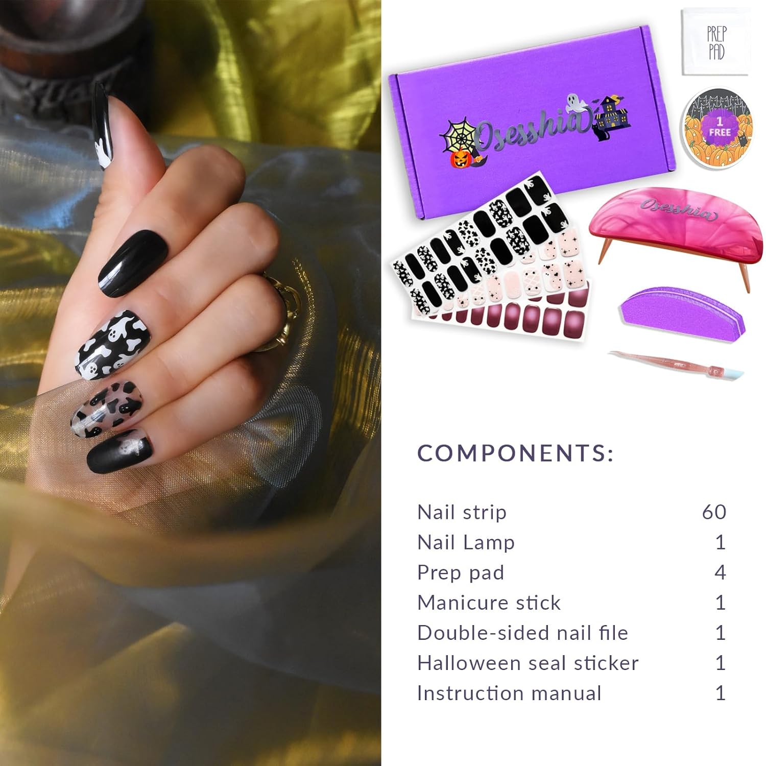 - What you get: Osesshia semi cured gel nail strips kit includes 60 nail strips, 1 nail lamp, 4 prep pads, 1 nail file, 1 manicure stick, 1 sealing sticker