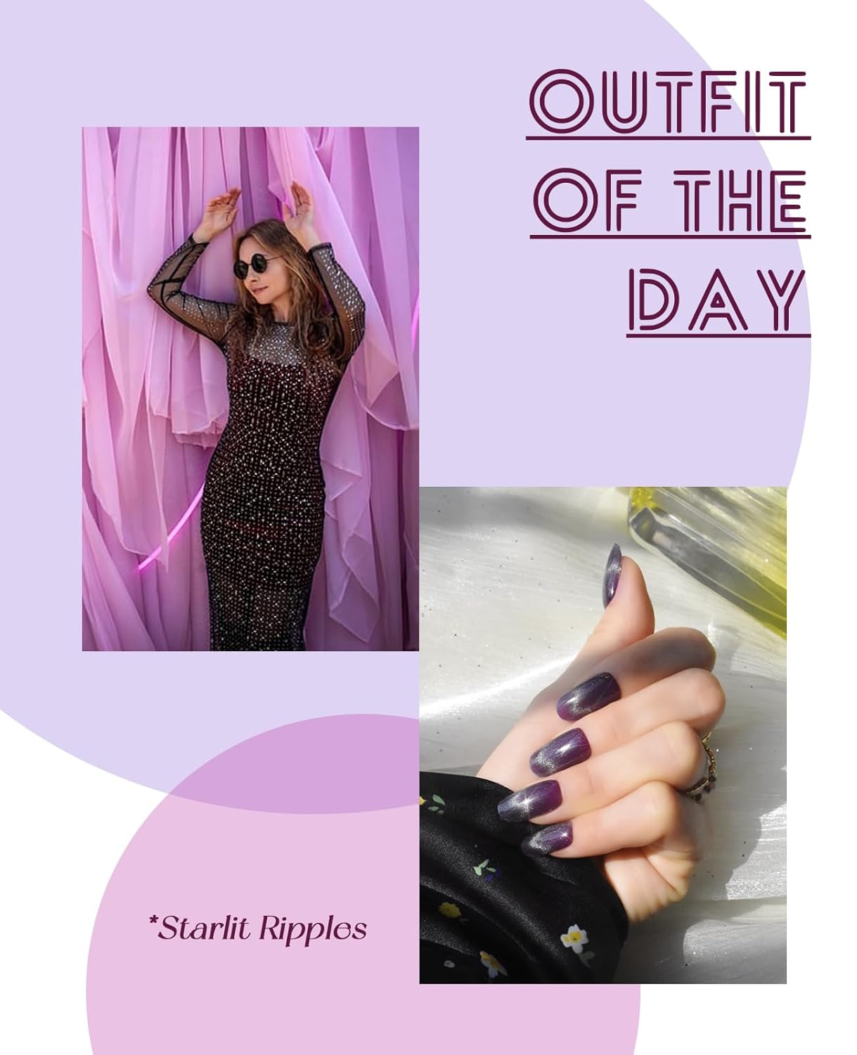 - Hassle-Free Application & Removal: Say goodbye to the struggles. Our glossy finish nail polish stickers are self-adhesive and can be trimmed to fit smaller nails and can be used on toenails. They are easy to remove and do not damage your natural nails. No glue or adhesive. No drips or no spills. No mess, no fuss