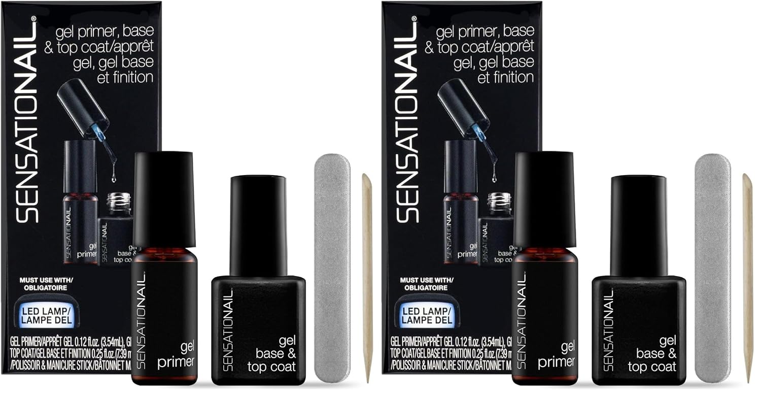 Sensationail Gel Polish Refill Kit - Base & Top Coat with Gel Primer, Black (2 Pack)