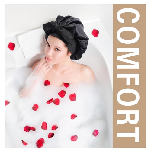 Silk Bonnet for Sleeping Women, Ajustable Hair Bonnet for Curly Hair with Tie Band Shower Caps Black£¬Large