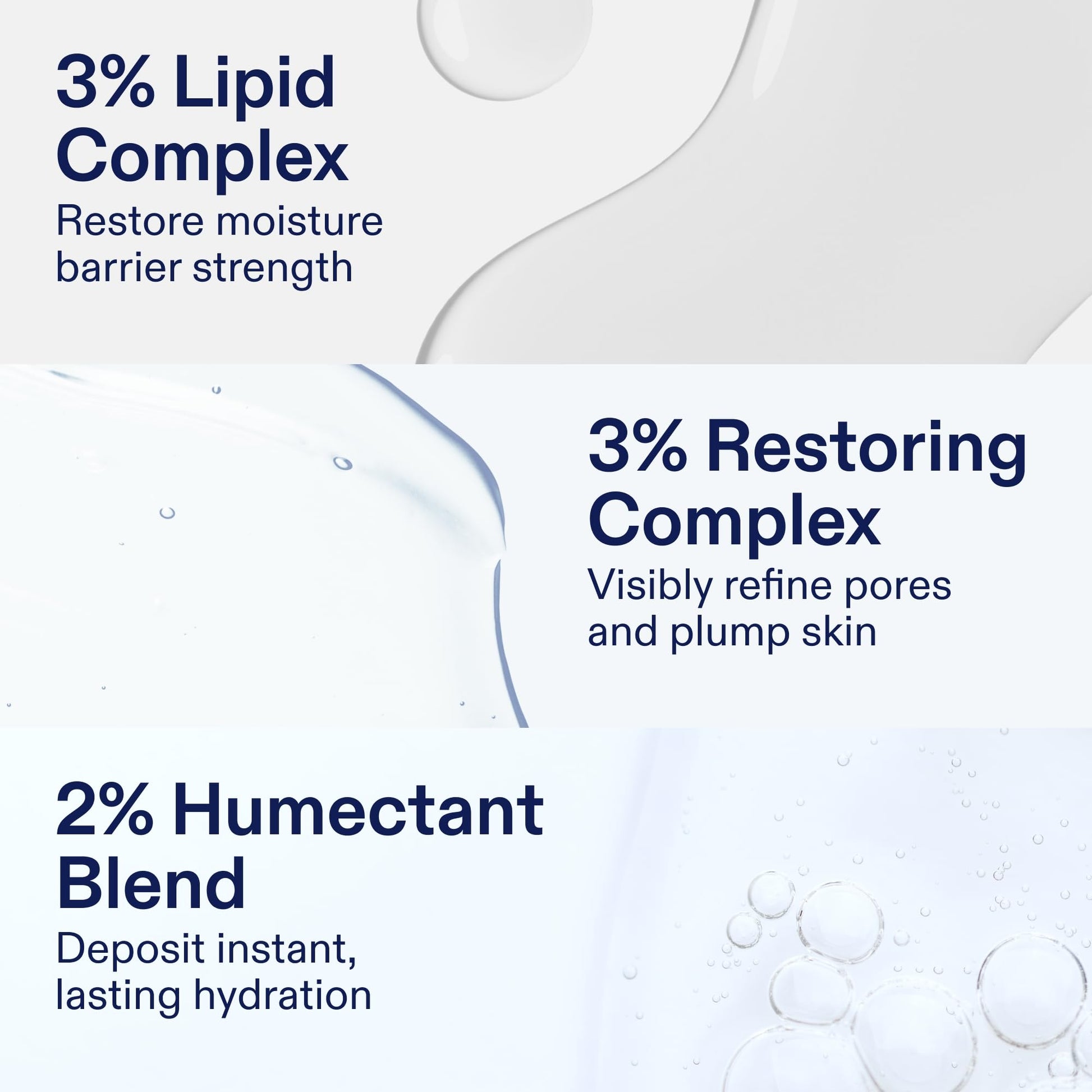 - INGREDIENTS - 3% Lipid Complex restores moisture barrier strength. 3% Restoring Complex with niacinamide and peptides help to visibly refine pores and plump skin. 2% Humectant Blend with hyaluronic acid deposits instant, lasting hydration.