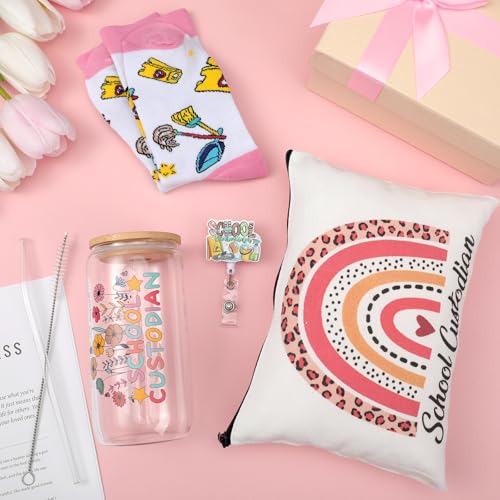 - Complete School Custodian Day Gift Set: this school custodian gift set is designed to meet your needs; Consisting of 1 crystal glassware 16 oz with straw and brush, 1 pair of comfortable school custodian day cotton socks, 1 school custodian makeup bag, 1 badge holder, and 1 stylish gift box, you'll have everything you need in one convenient package