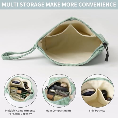 Small Cosmetic Bag set for Women Corduroy Makeup Bag with Interior Pocketes Cute Corduroy Makeup Pouches Women Small Toiletry Bag (Green Smile)