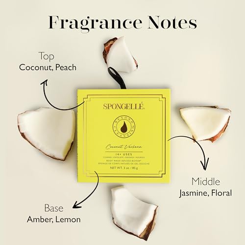 Spongelle Coconut Verbena Wild Flower Buffer Body Scrubber with Box | Bath & Shower Loofah for Women | Exfoliator with Body Wash Infused | 14+ uses