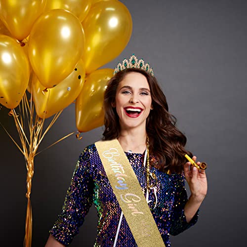 SuPoo Birthday Crowns Birthday Sash and Crown Kit Green Birthday Tiara Rhinestones Crown with Comb Glitter Birthday Girls Sash Crystal Headband Happy Birthday Decorations Gifts for Women