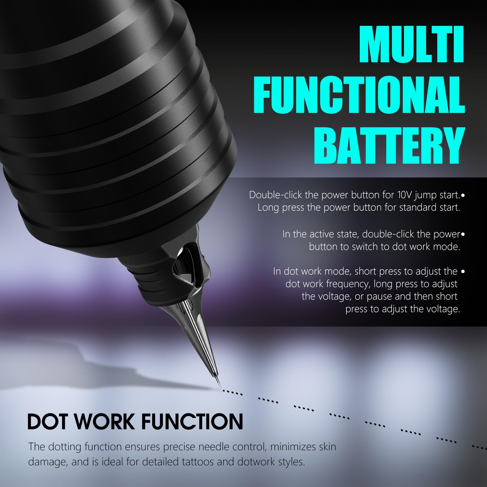 - Quiet Powerful Motor & Battery Usage Instructions: Equipped with a robust motor for stable needle performance, ensuring smooth and quiet operation with minimal skin damage. For first-time use, fully discharge the battery and then charge it completely before operation. Do not use the machine while charging to ensure safety.