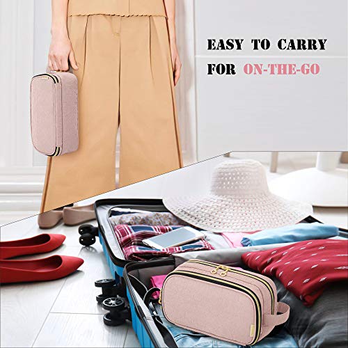 Teamoy Portable Makeup Brush Bag (up to 9"), Makeup Brush Holder with Handle, Travel Makeup Organizer Cosmetic Bag, Travel Toiletry Bag Artist Storage Bag, Misty Rose