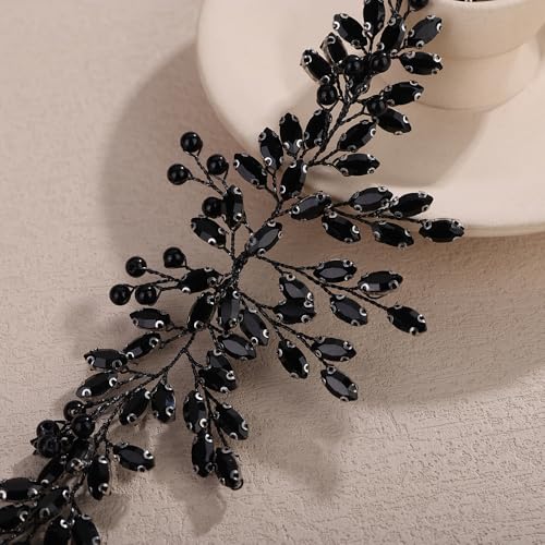 - Handmade black crystal pearl hair vine headband for women party prom wedding and evening,exquisite and unique design,will add more charm for your outfit.