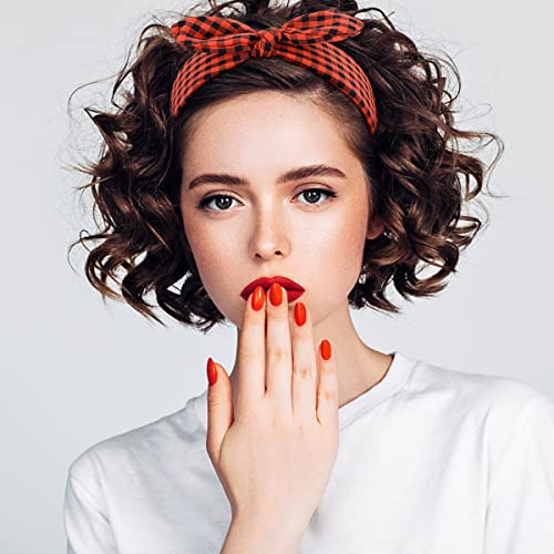 TOBATOBA 6Pcs Plaid Headbands With Bow, Cute Knotted Wide Headband, Christmas Hair Accessories for Women Girls, Bunny Ears Red Headwraps
