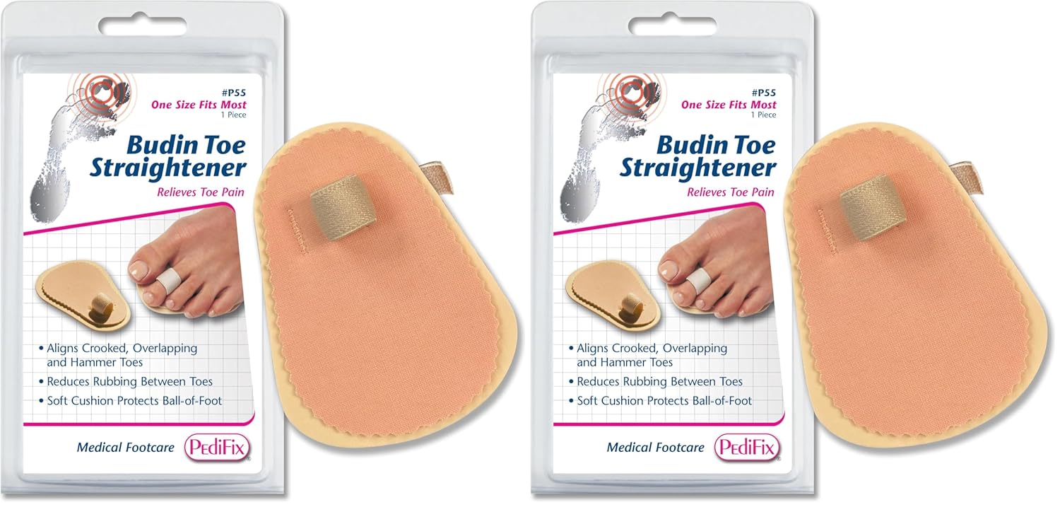 Toe Straightener by Pedifix P55 - Adjustable One Size (Pack of 2) for Comfort