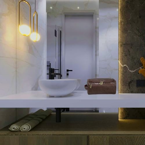 Travel Toiletry Bag for Men PU Leather Cosmetic Bag Travel Kit Travel Bag for Toiletries Medicine Bag Gifts, Brown PU