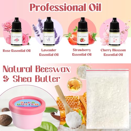 - COMPLETE DIY LIP BALM KIT - includes 1x Shea Butter, 1x Beeswax, 1x Sweet Almond Oil, 1x Container, 1xCandle Holder, 1x Candle, 4x Essential Oils, 6x Pigments, 12x Empty Lip Balm Tube, 12x Droppers, 2x Stirring Spoons, 2x Spoons, 2x Label Stickers, 1x Instruction.