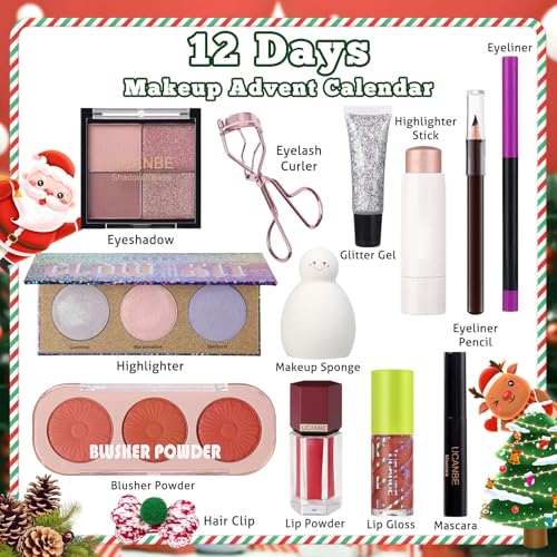 UCANBE Makeup Advent Calendar 2024, 12 Days Christmas Countdown Calendar Surprise Gift Kit, Xmas Holiday Festival Cosmetic Starter Makeup Set with 12 Beauty Boxes for Women Teens Girls