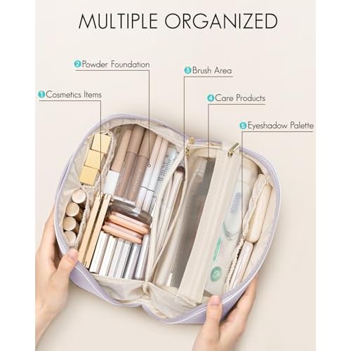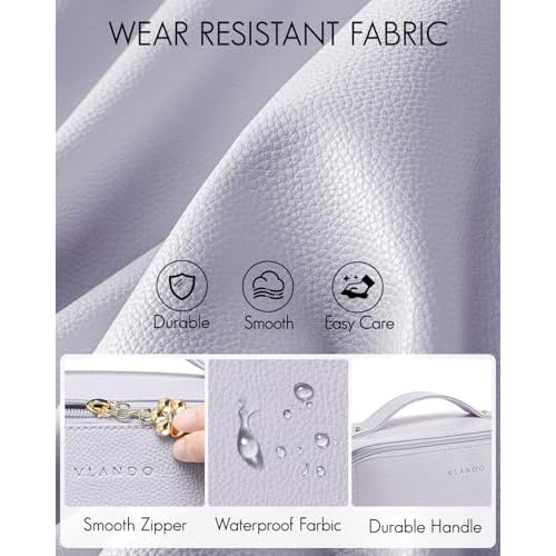 Vlando Makeup Bag,Large Capacity Toiletry Bag for Women Waterproof Portable Make up Pouch PU Leather Open Flat Cosmetic Bag(Purple)