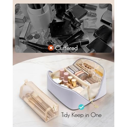 - Roomy & Portable: 9.1 x 4.8 x 4.7 inches (0.53lbs) offers ample space for cosmetics, brushes, and toiletries. Maximizes storage without cluttering luggage?ideal for travel,daily cosmetic organizer