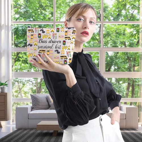 WCGXKO School Bus Driver Gift End Of Term School Bus Driver Gift School Bus Driver Survival Kit Cosmetics Bag (Bus Driver ever), Beige
