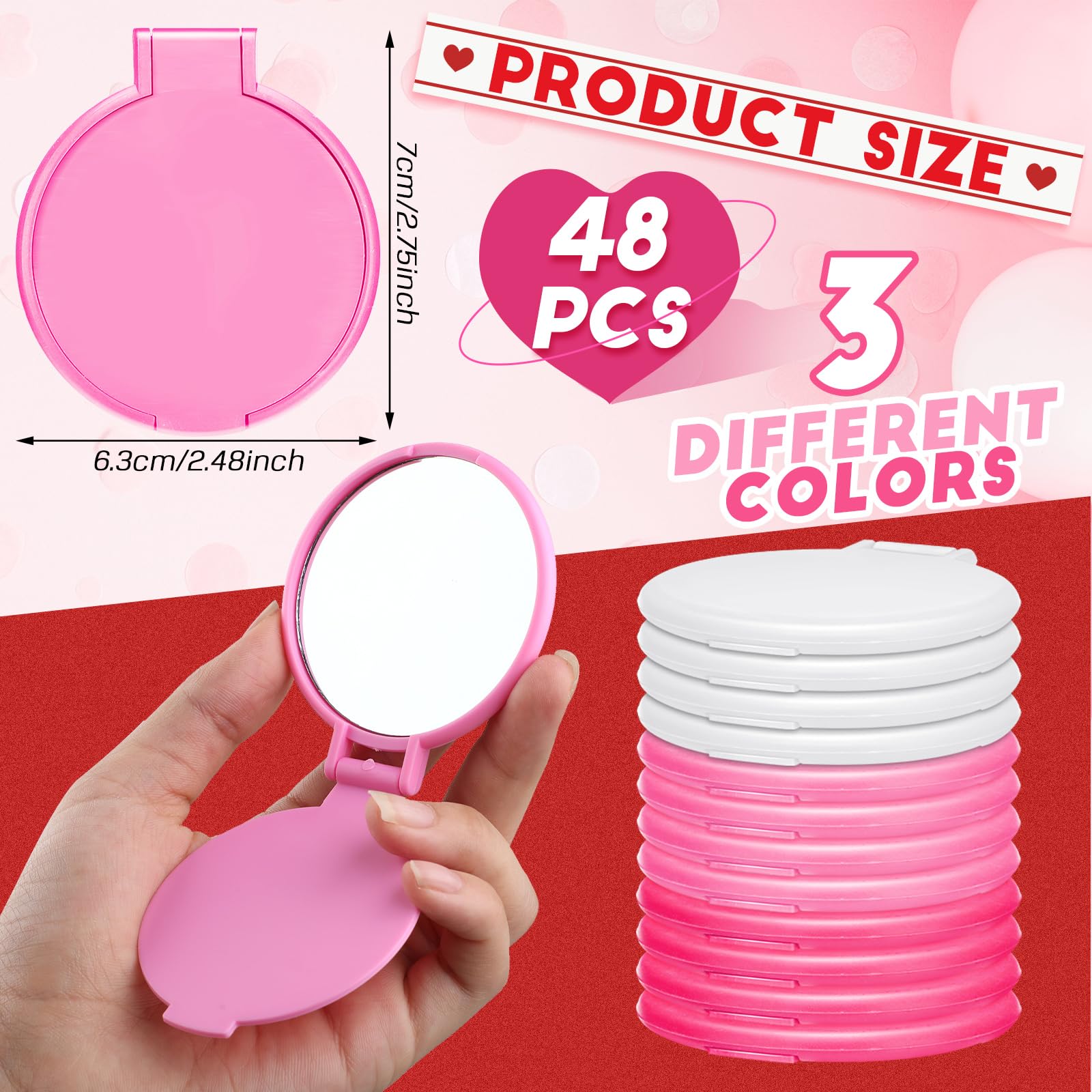 - Abundant and romantic: you will get 48 pieces of mini compact mirrors bulk in 3 romantic colors, white, pink, rose red, 16 pieces of each color, abundant quantity and rich color to meet your use, replacement and sharing needs