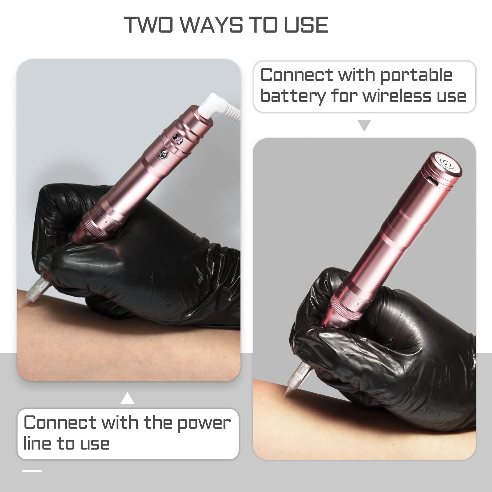 - 【Cordless and Plug-in Use】 This ideal cordless PMU machine includes a rechargeable lithium battery for cordless operation and a connector for plug-in use, which makes it easy to charge and use when you're at home or working in a studio. 2 hours on a full charge can allow you approximately 3 hours using.