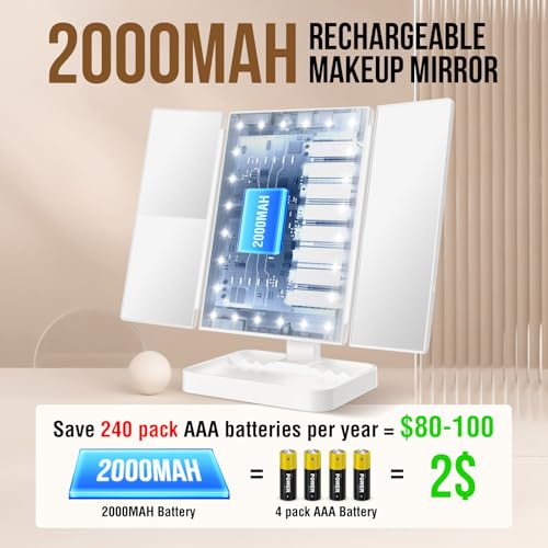 - Rechargeable lighted makeup mirror, built in rechargeable 2000mAh battery saves the cost of replacing the battery, lasts longer, and the brightness is 30% higher than other power supply methods