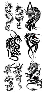 - 【TEMPORARY TATTOO PACK FOR MAN WOMEN ADULTS KIDS】Each Size is about 12 x 19 cm / 4.72 x 7.48 inch. Contains 6 sheets temporary tattoo paper stickers which are printed with non-toxic ink.