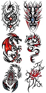 6 Sheets Waterproof Arm Body Art Temporary Tattoo Stickers Black Red Jewels Evil Dragon Scorpion Flower Tribal Totem Lotus