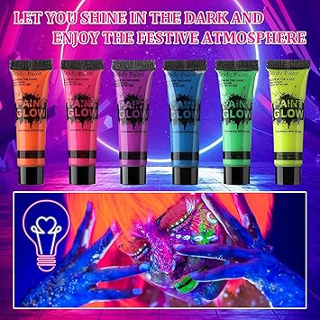 - Multiple Occasions: Whether it's a rave theater,a theme costume,a Halloween party,or an everyday creative look,glow in the dark face body paint is perfect for making your costume look sophisticated and fun,the center of attention,and making every night more memorable