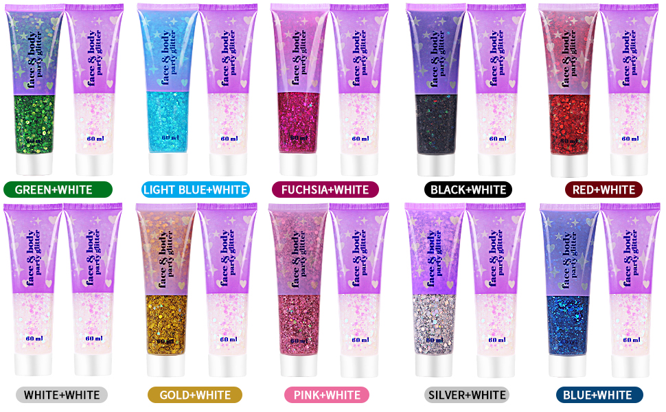 - 2.Easy to use and remove, a little goes a long way, the gel dry fairly quickly, hold up well, and the stay intact for several hours, and the gel is water soluble, so when you finish the party concert or music festival, just wash off the gel and glitter using soap and warm water.