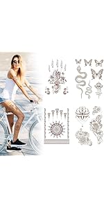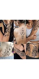 - 【Where to use】: We have many beautiful temporary tattoo kits with beautifully designed temporary tattoo stickers! You can apply these fake tattoos on women body art arms, thighs, shoulders, wrists, little hands, chest, face, feet, neck, forearms, waist, ankles, chest, back, calves. Great for adult Halloween makeup kits, makeup, clip art, decorations, Halloween costumes, cosplay, decoupage, carnival accessories, bachelor parties, festivals.