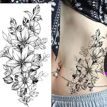 18 Sheets Flower Temporary Tattoos Adult for Women Arm Neck, Waterproof Black Long Lasting Realistic 3D Body Art Abdomen Back Sketch Tattoo Stickers