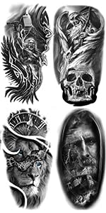 - 【DURABLE, WATERPROOF, REMOVABLE, LONG LASTING】These tattoos are easy to apply in 10-20 seconds with water and are long lasting for up to 5 days, depending on how many showers you take and how often you scrub the tattoo with soap and water. They can be easily removed with rubbing alcohol, body oil or olive oil.