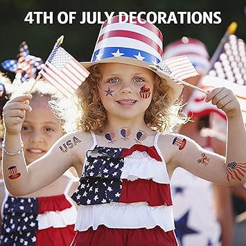 1.These Independence Day temporary tattoos usually last up to 2 to 5 days depending on the applicable area (1-2 days on fingers; 2-3 days on the back of hands and wrists. 2-4 days on neck, chest, shoulders, and arms; 3-4 days on waist; 3-4 days on legs; 5-6 days on ankles).