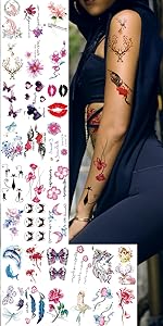 - 【Wide Application】3D fashion,sexy temporary tattoos are suitable for birthday gifts, party favor, Christmas decoration, Halloween, club, beach, pool, gym, new old school, Children's Day, holiday, festivals, party Graduation Season,Carnival,Styling Tools,Punk,Makeup Tips,Rock,Beauty,Fake Jewels,Coffee Cup,Bottle Decor,Crafts.