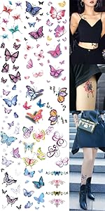 - 【Pretty and Realistic】The tattoo stickers has lots of pattern are durable and realistic, and can be used for your body tattoo DIY. You can choose any temporary butterfly tattoo stickers to show your personality.
