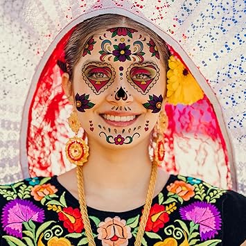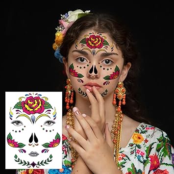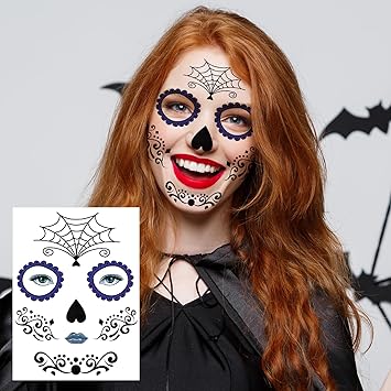 - SUGAR SKULL TEMPORARY FACE TATTOO - Beautiful Day of the Dead full face temporary tattoo kit. As a prop for party, it can really help to create special and memorable moments for you and your friends