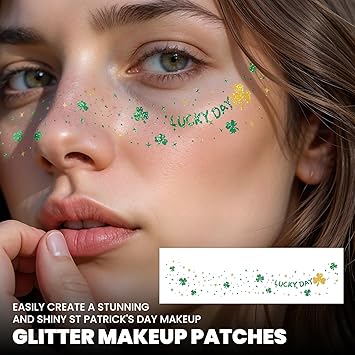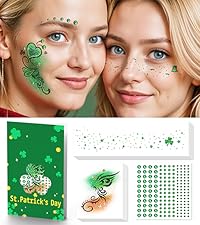 - 【Easy to Use & Remove】Just choose your desired design, place it on clean, dry skin, and press a damp cloth or sponge against the tattoo. Wait several seconds, and gently remove the backing paper to reveal a natural look. For an added touch of glamour, our green face gems can be applied directly to the face without any additional glue, making them a quick and easy way to enhance your St. Patrick's Day look. If you want to change or remove it, use olive oil, baby oil, or makeup remover.