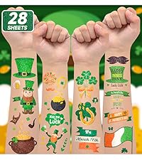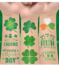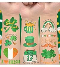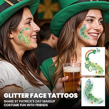 - 【High-Quality Materials】Made from high-quality print materials, these St. Patrick's Day tattoos are safe and non-toxic. The vibrant design incorporates glitter, gold, light green, dark green, etc. hues, creating a unique and eye-catching look. These tattoos are not only visually appealing but also built to last, resisting breakage and fading to ensure they stay vibrant throughout your celebrations.
