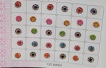 Women Fashion Premium Spiral Book 120 Round bindis | Multicolored Red Black Maroon Bindi with Crystals - Bridal Forehead Decor / Belly Stickers for crafts Temporary Tattoo Body Art Jewel Various Sizes