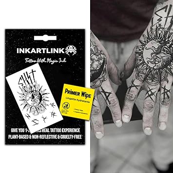 - Exotic products INKARTLINK temporary tattoo is not a simple tattoo sticker. It is different from the ordinary stickers we were familiar with when we were children. This product is waterproof, friction-resistant, and non-reflective. It is almost the same as a real tattoo and lasts up to 1-2 weeks. Our store provides a variety of Exquisite designs are available for customers to choose from, and we hope to satisfy all customers.