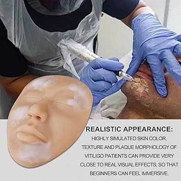 - Realistic Pigment Absorption: Designed specifically for artists perfecting permanent makeup Vitiligo Skin Camouflage techniques, our 3D Practice Face offers a realistic experience in terms of pigment absorption. The procedure involves tattooing pigment into the areas of skin affected by vitiligo to match the surrounding skin tone"