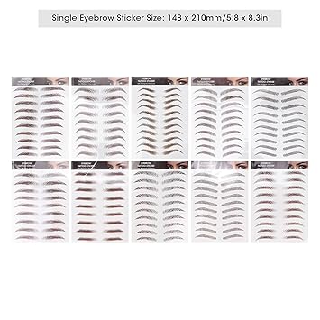 - EYEBROW TRANSFER STICKER - 10 special 6D eyebrow transfers stickers, 98 pairs in total, easy to change makeup and easy to use. You can find the brows from our selection to flatter your face shape. Multiple kinds of eyebrow sticker are optional, with different eyebrow shape, you can choose according to needs.