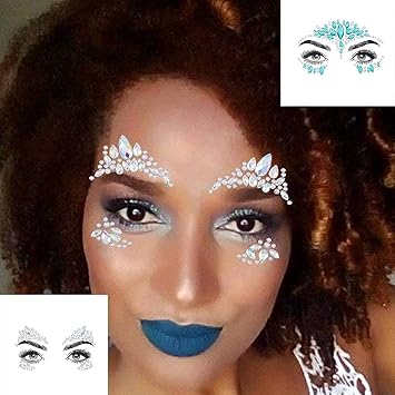 Rhinestone Face Stickers Mermaid Gems Jewels Festival Temporary Tattos Body Jewelry for Women and Girls 2 Sets