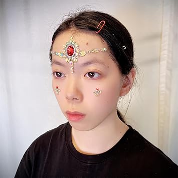adhesive face gems jewels rave accessories alien outfit glitter diamond pastie sticker rhinestone eye temporary tattoo for forehead make up Christmas ( red/S066)