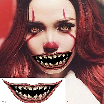 20 Sheets Halloween Temporary Tattoo Stickers Face Stick for Women Men Prank Makeup Clown Horror Scary Big Mouth Fake Decals Adults Kids