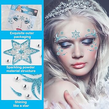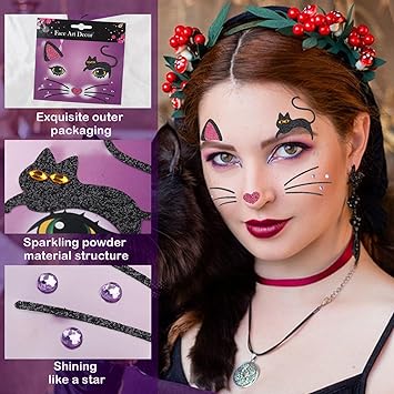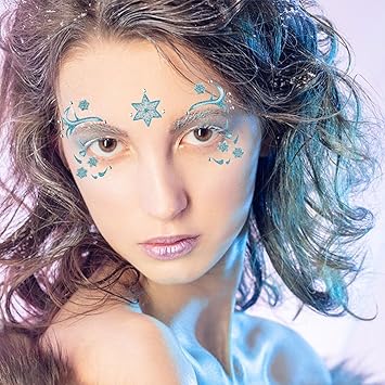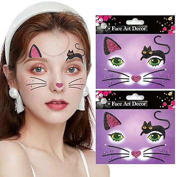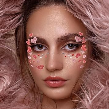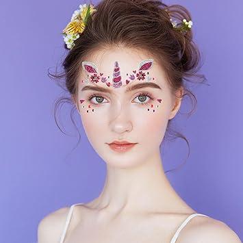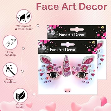 Unicorn Fake Tattoos Glitter Cartoon Face Temporary Cute Red Pink Hearts Jewels Tattoo Stickers for Adults Kids Christmas New Year Eye Makeup Kit Decor Supplies 2Pcs