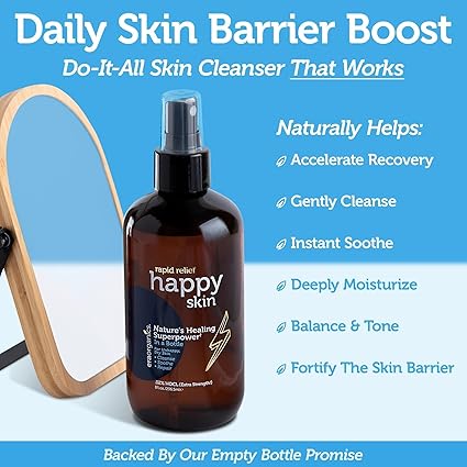 Happy Skin .02% Hypochlorous Acid Spray Toner- Extra Strength, Gentle 100% Natural Toner & Cleanser for Face Body- Soothe, Hydrate Repair Dry, Sensitive Skin- pH Balanced, Non-Toxic 8oz