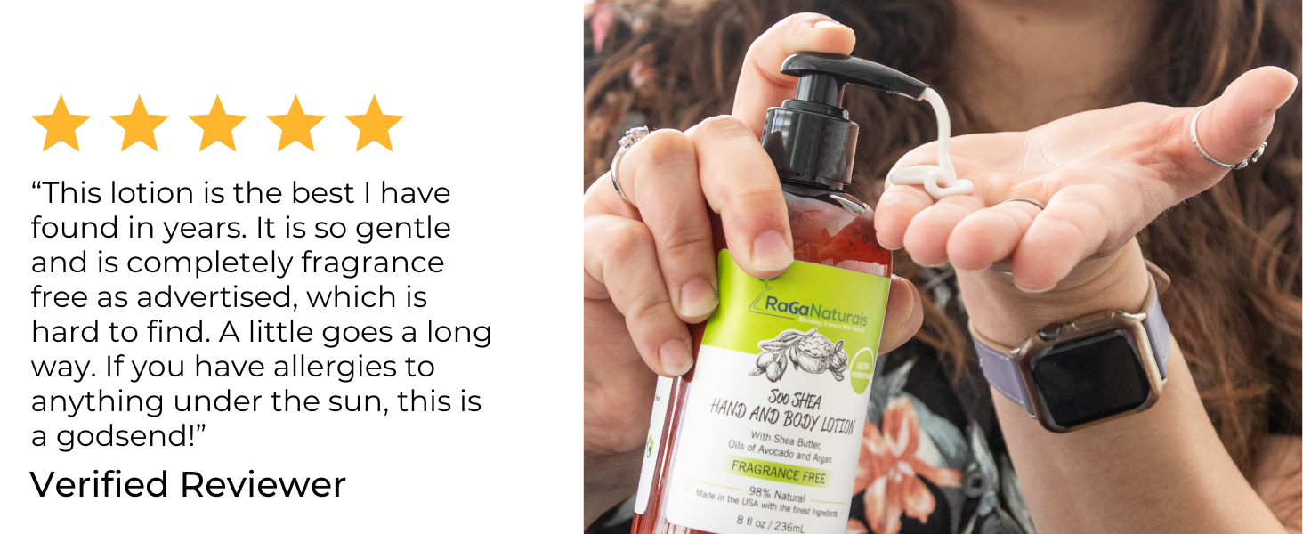 - Unscented lotion with Quality Ingredients: Crafted using only 13 ingredients, our non-toxic, all-natural, plant-based, fragrance free body lotion contains Shea butter, Argan Oil, Avocado Oil, Pro-Vitamin B5, Vitamin E and LOVE. It offers moisturization without any synthetic fragrances or harsh chemicals and is an ideal sensitive skin lotion. Proudly Made in the USA.
