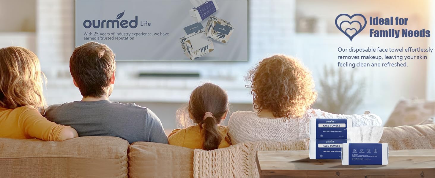 Ourmed Life Face Towels, Disposable Biodegradable Clean Wipes for Sensitive Skin, Lint- free Facial Towels Women Cleansing, Skincare and Makeup Remover, Dry Wipes,100 Count EF Texture